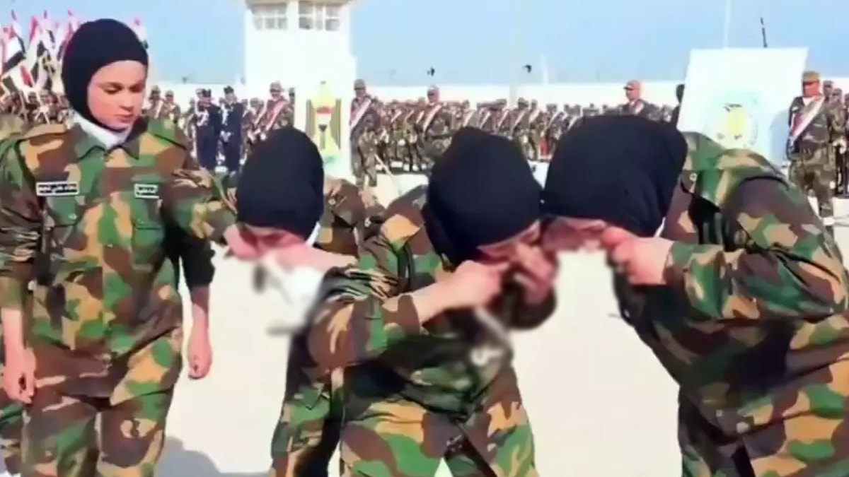 Irak ordusundaki kadın kursiyerler, fiziksel ve zihinsel dayanıklılıklarını sergilemek amacıyla canlı yılan ve güvercin yedi.