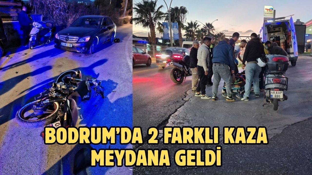 İlk kaza, Ortakent Müsgebi Caddesi’nde meydana geldi. Ö.F.H. idaresindeki motosiklet, virajı alamayarak karşı yönden gelen otomobile çarptı. Kazada yaralanan motosiklet sürücüsü 112 Acil Sağlık ekipleri tarafından Bodrum Devlet Hastanesi’ne kaldırıldı. Sürücünün kaza öncesinde aynı caddedeki başka bir otomobile de çarptığı o kazanın maddi hasarla atlatıldığı bildirildi.