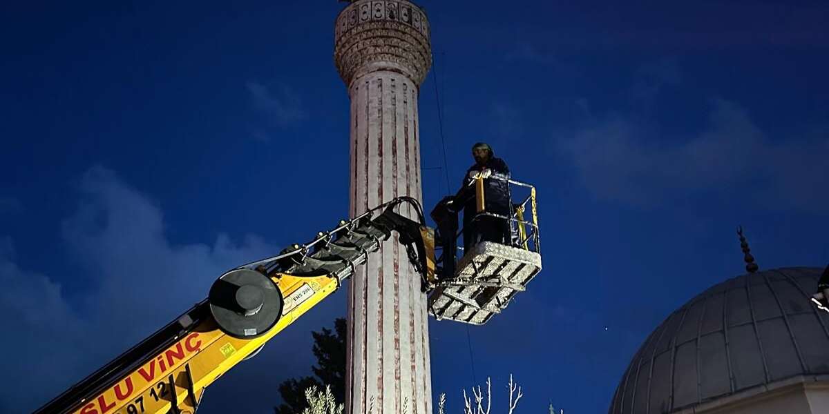 Yaklaşık 25 metre yükseklikte bulunan minare külahı, ekiplerin titizlikle yürüttüğü yaklaşık 2 saatlik çalışma sonucunda emniyetli bir şekilde aşağı indirildi. Çalışma sırasında çevrede gerekli güvenlik önlemleri alınırken, herhangi bir olumsuzluk yaşanmadı.