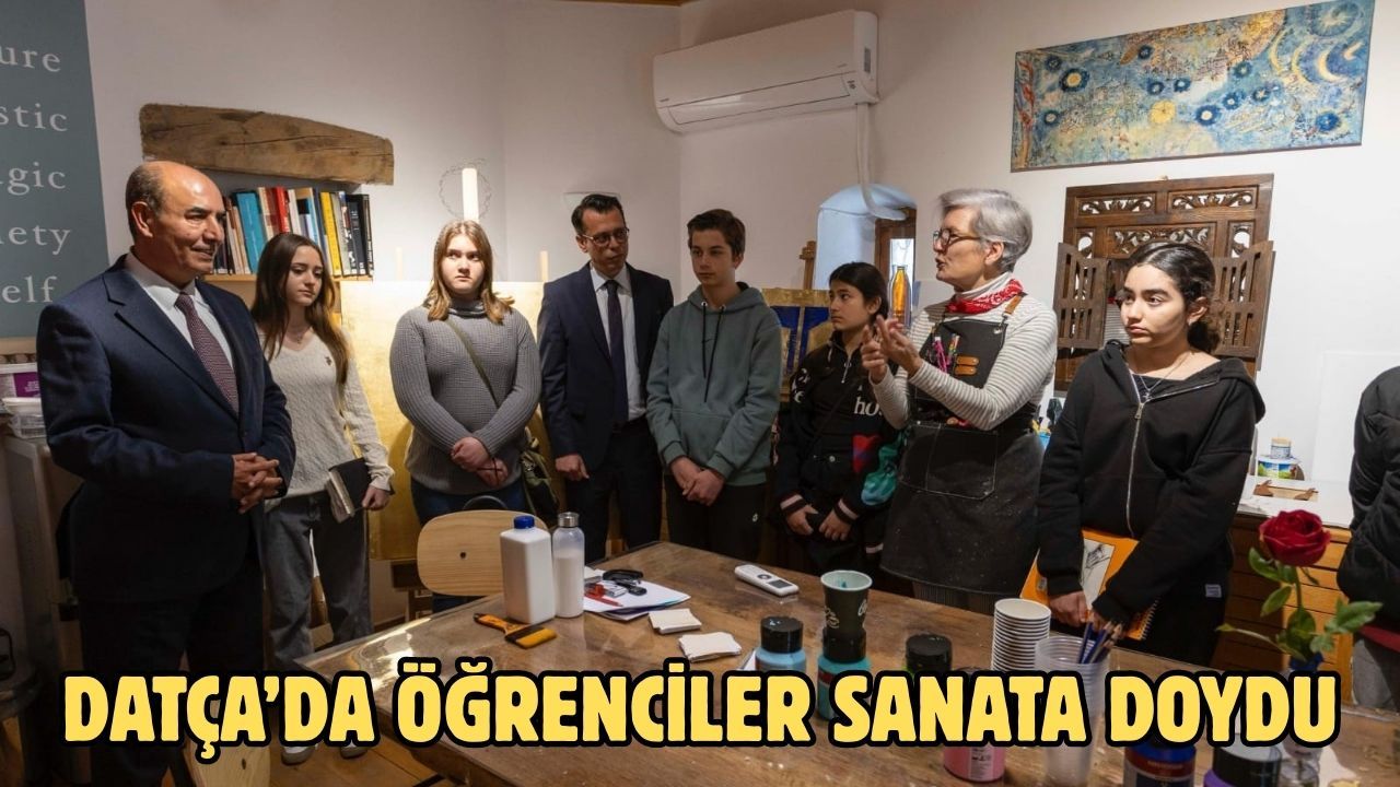 Muğla Valisi Dr. İdris Akbıyık tarafından Muğla’da 2026 yılının “Gençlik Yılı” ilan edilmesi ve Şubat ayı temasının “Sanat ve Farkındalık” olarak belirlenmesi kapsamında, İlçe Milli Eğitim Müdürü Bülent Aldal’ın katılımıyla anlamlı bir sanat etkinliği gerçekleştirildi. Dünyaca ünlü sanatçı Aljohara Jeje, kendi atölyesinde öğrencilerle bir araya gelerek eserlerini, çalışma sistemini ve sanatsal yaklaşımını paylaştı. Aynı zamanda öğrencilerle uygulamalı bir sanat atölyesi gerçekleştiren sanatçı, gençlerimize birebir üretim süreci deneyimi yaşattı. Etkinlik, öğrenciler için ilham verici ve farkındalık oluşturan özel bir sanat deneyimi oldu. Etkinliğe öğretmenler, eğitim öğretimin her kademesinden öğrenciler ve veliler katılım sağladı.