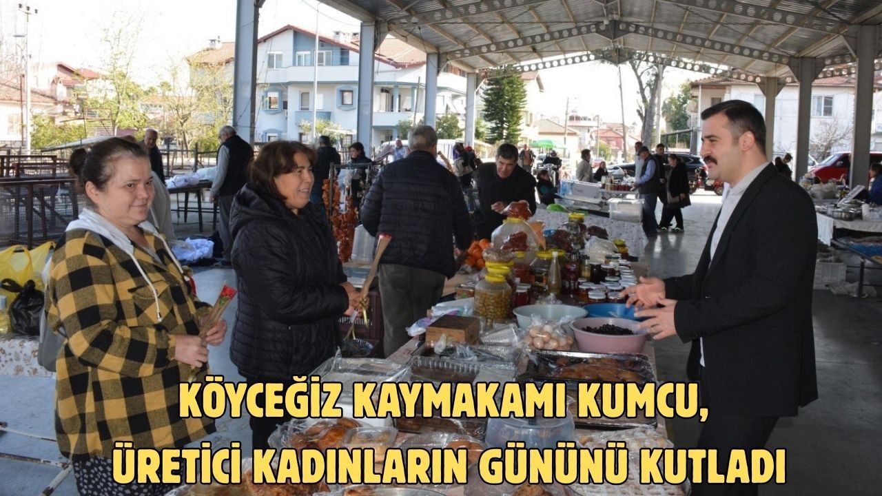 Köyceğiz Kaymakamı Mert Kumcu, Kapalı pazar yerinde kurulan ‘Kadın Üretici’ pazarını ziyaret ederek, üretici kadınlar ile bir araya geldi. Kaymakam Kumcu, ziyarette kadınların üretimde ve pazarlamada yaşadıkları sorunları, çözüm önerilerini dinledi. Köyceğiz Kaymakamlığı olarak üretici kadınlara destek olmaya devam edeceklerini belirtti. Kaymakam Kumcu, 8 Mart Dünya Kadınlar Günü vesilesi ile üretici kadınların Dünya Kadınlar Günü’nü çiçek takdim ederek kutladı. Üretici kadınlar Köyceğiz Kaymakamı Mert Kumcu’nun ziyaretinden dolayı memnuniyet duyduklarını ifade ederek teşekkür ettiler.