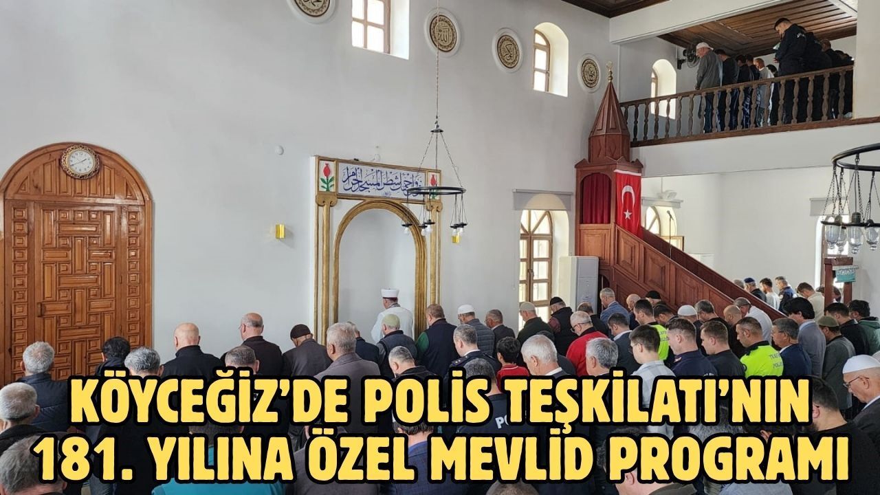 Muğla’nın Köyceğiz İlçe Müftülüğü’nce Türk Polis Teşkilatı’nın 181. kuruluş yıl dönümü kapsamında Merkez Hacıbey Camiinde Mevlid-i Şerif programı düzenlenip İlçe Emniyet Müdürlüğü tarafından da lokma ikramı yapıldı. Mevlid programı din görevlilerinin Kur’an-ı Kerim tilavetiyle başladı. Ardından okunan mevlid-i şerif ile vatan uğruna hayatını kaybeden tüm şehid-i şüheda ve kahraman polisler yapılan dualarla rahmetle anıldı. Müftü Ahmet Karagöz, “İslam” konulu birlik ve beraberlik ve Vahdet içerikli hutbe irad ettikten sonra polislerin 181. yıllarını tebrik edip polislere, jandarmaya, güvenlik güçlerine ve isimsiz kahramanlara havada, karada ve denizde daima mansur ve muzafferiyetler diledi. Mevlid programı, İlçe Emniyet Müdürlüğü tarafından yapılan lokma ikramıyla sona erdi. Mevlid programına Köyceğiz Kaymakamı Mert Kumcu, İlçe Emniyet Müdürü Mehmet Güneş, İlçe Müftüsü Ahmet Karagöz, protokol üyeleri, emniyet mensupları, şehit aileleri ve vatandaşlar katıldı.